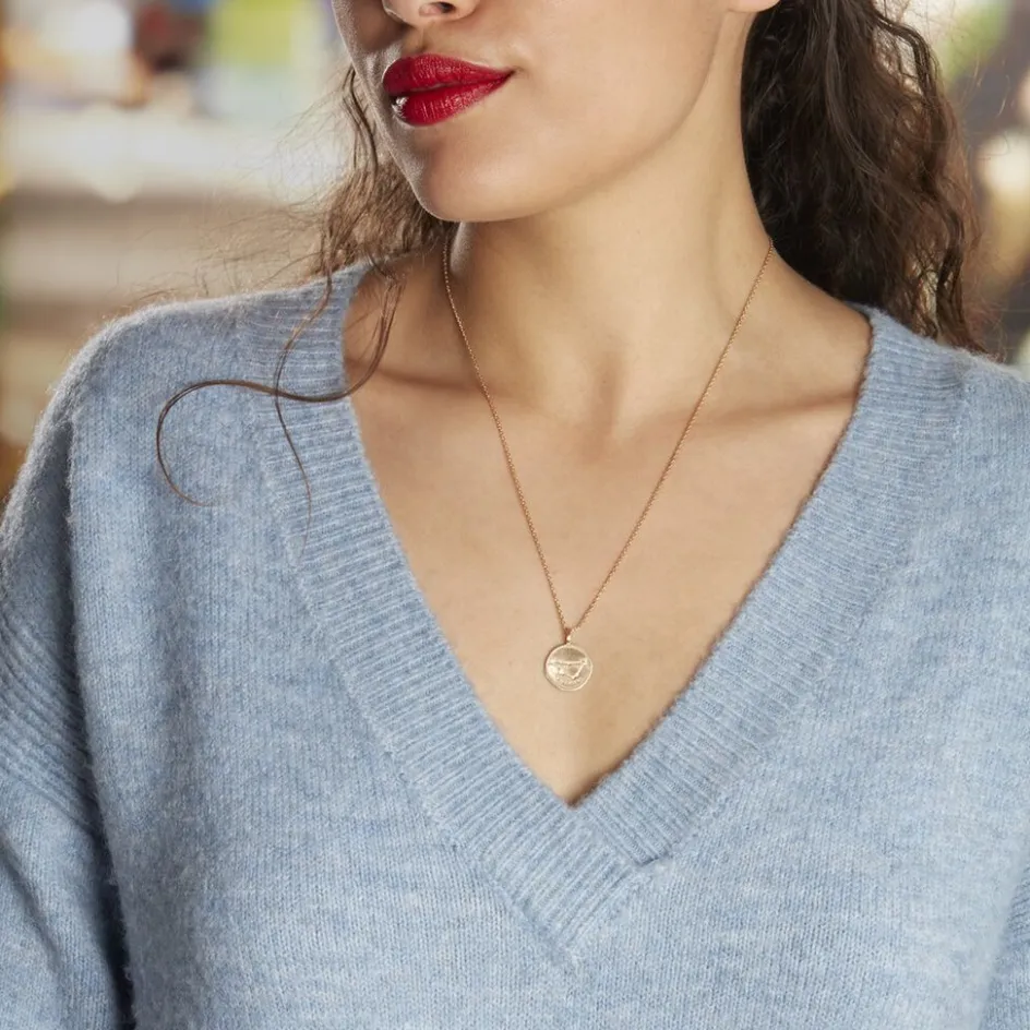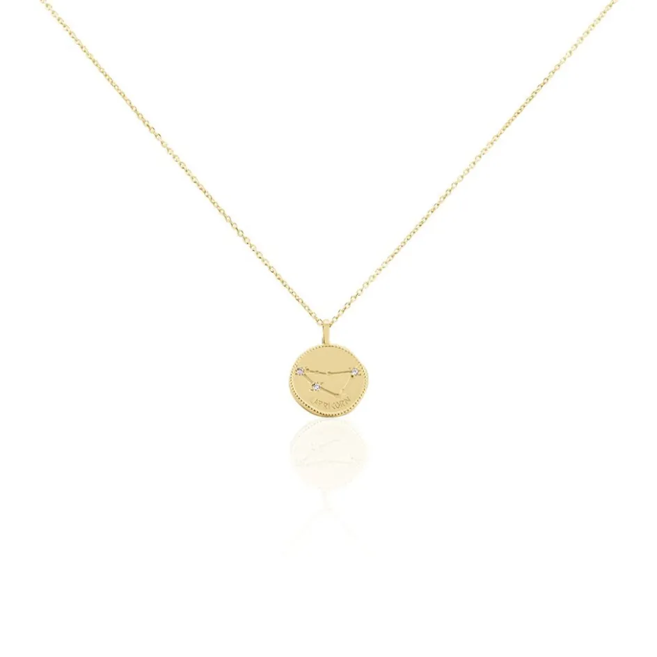Collier Plaqué Or Jaune Pastille Mate Signe Astrologique Capricorne Oxydes De Zirconium Chaine Forcat 50cm