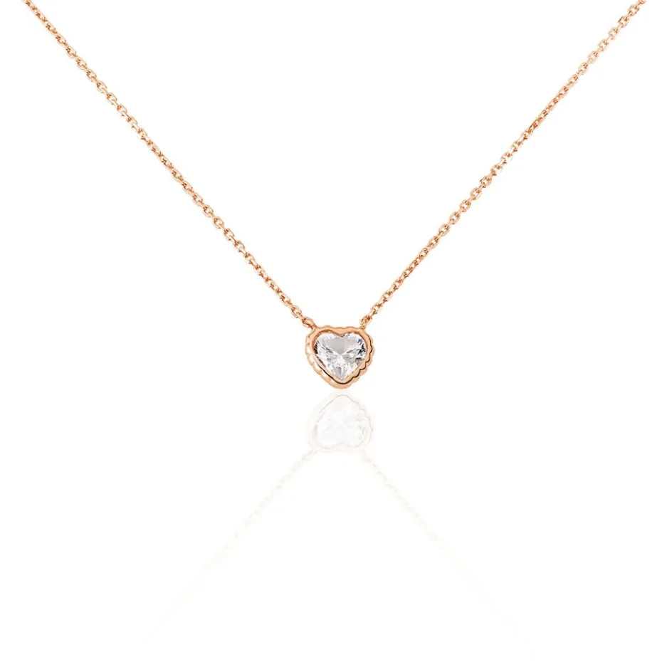 Collier Or Rose 375/1000 Solitaire Forme C艙ur Oxyde De Zirconium Serti Clos 43cm