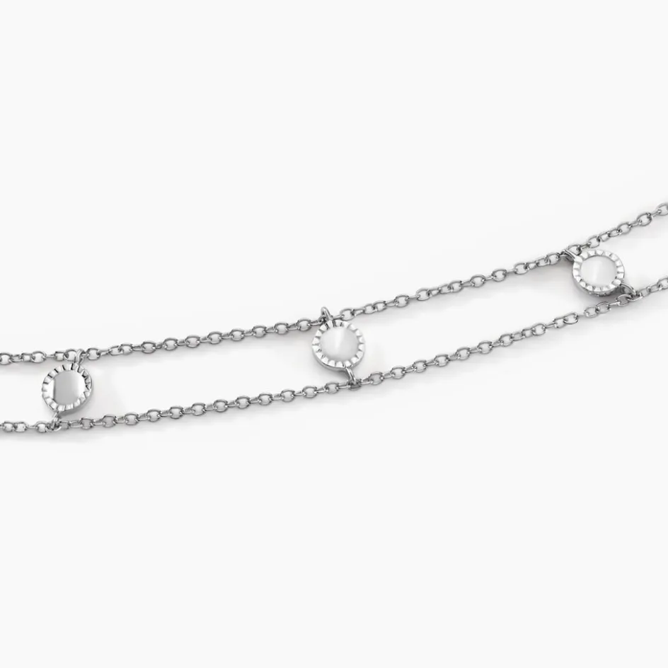 Collier Chocker Argent Blanc 925/1000 Pastilles Effet Perle Double Mailles Forcat 36cm
