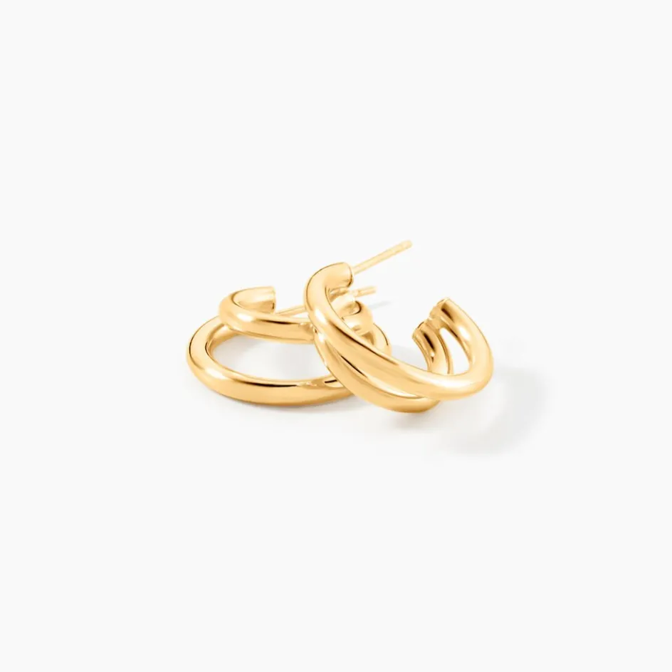 Creoles Or Jaune 375/1000 Demi Cercle Petit Et Grand Fil Rond Demi Jonc Bombe Lisse Longueur 16mm