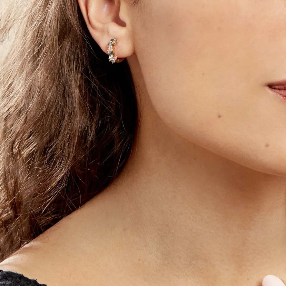 Creoles Plaque Or Jaune Multi Pierres Artificielles Bleues Diametre 15mm 1.5mm