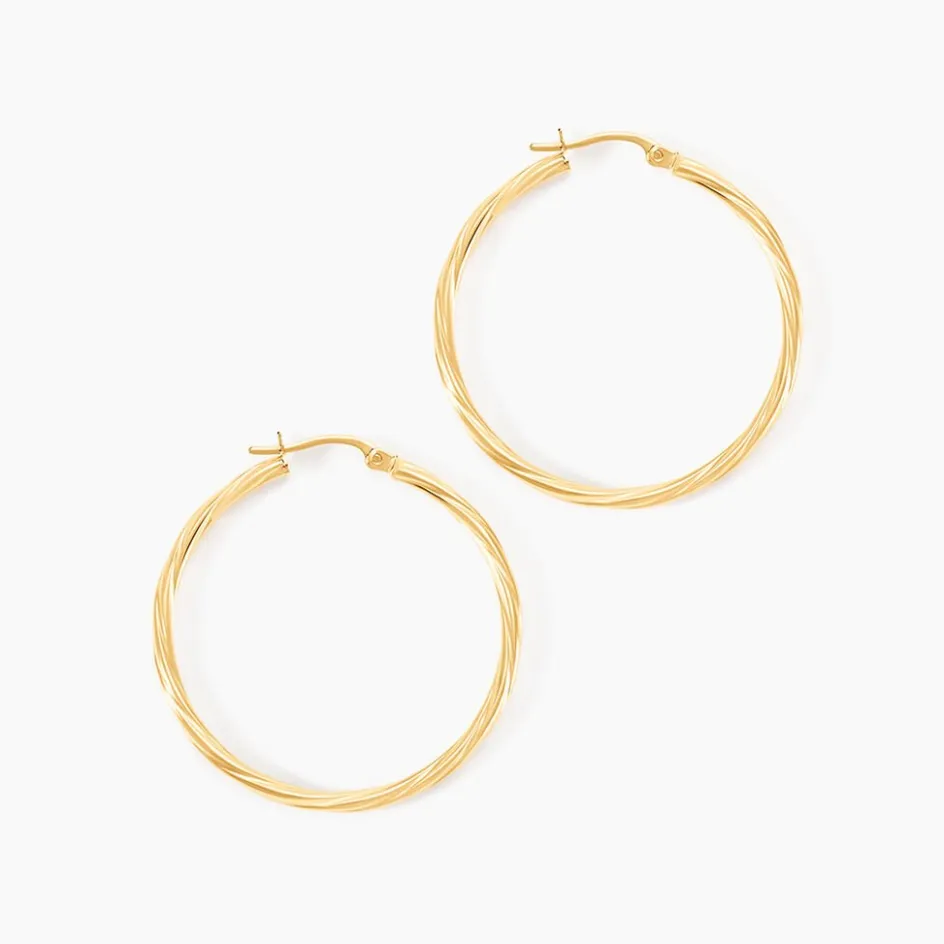 Créoles Or Jaune 750/1000 Fil Rond Torsadé Largeur 2mm Diamètre 30mm