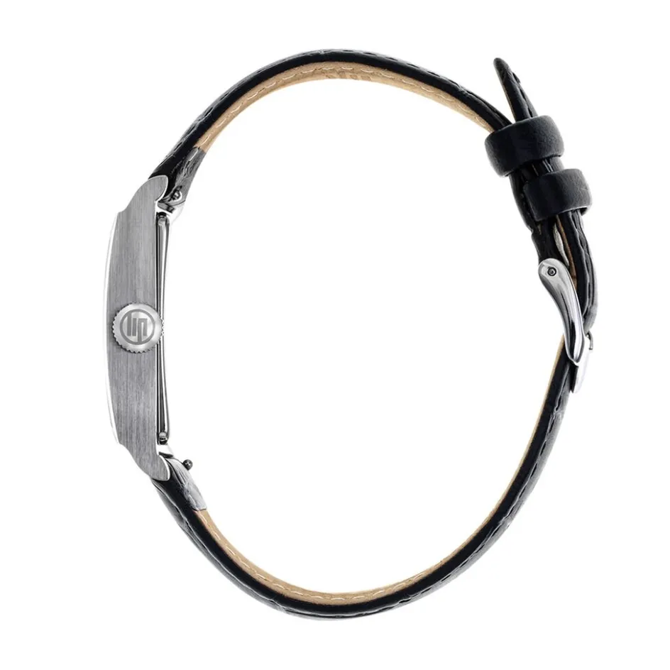 Montre Lip Churchill T18 Acier Argente Rectangulaire Quartz 21.2mmx38.5mm Fond Argente Bracelet Cuir De Vache Noir 671929