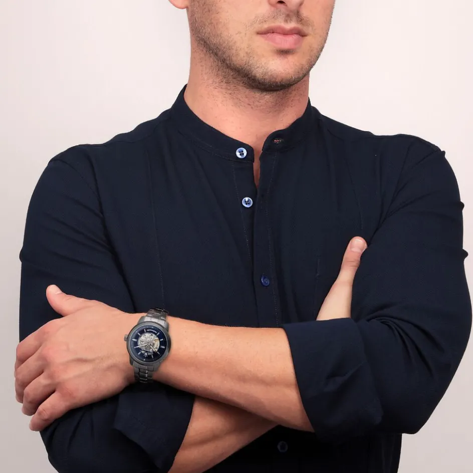Montre Maserati Successo Auto Acier Argenté Ronde Quartz Chronographe 44mm Fond Bleu Bracelet Métal Argenté R8873621002