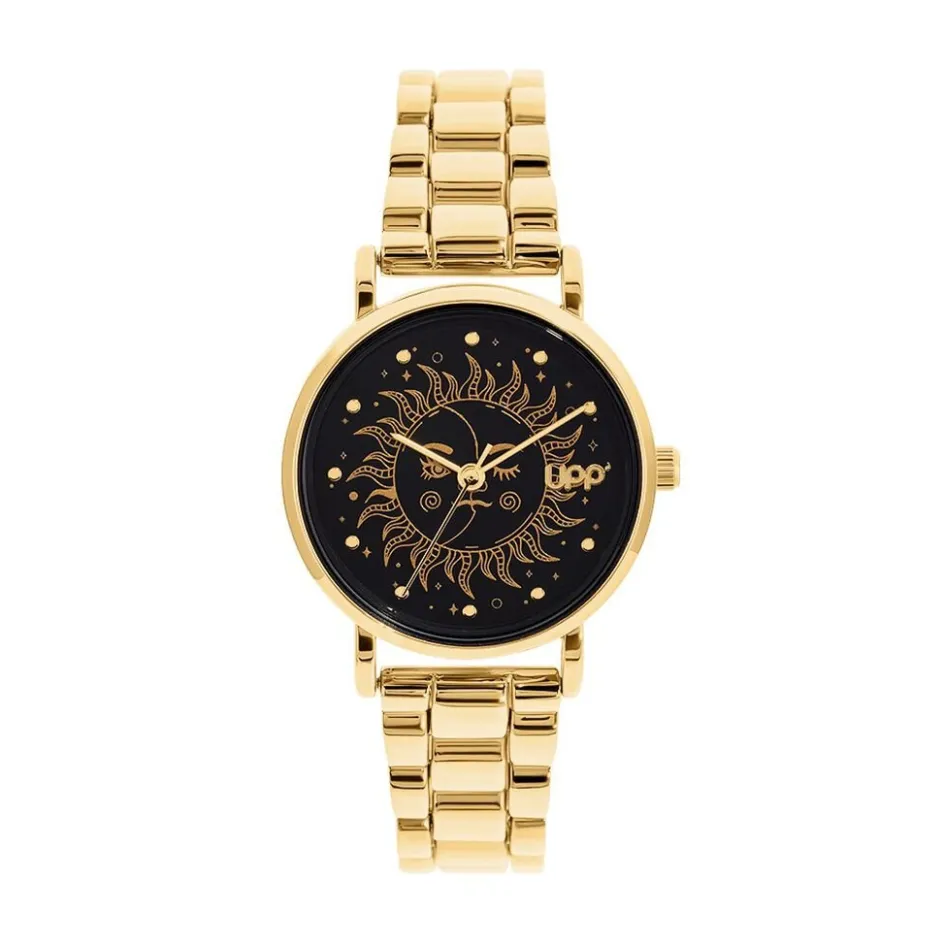 Montre Upp Solena Alliage Dore Ronde Quartz 29mm Fond Noir Soleil Bracelet Alliage Dore Wbc0131-004