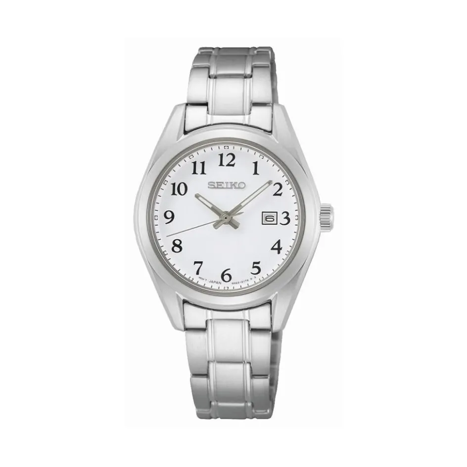 Montre Seiko Classique Acier Blanc Ronde Quartz 29.8mm Fond Blanc Bracelet Acier Gris Sur465p1