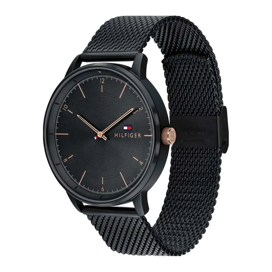 Montre Tommy Hilfiger Hendrix Acier Noir Ronde Quartz 43mm Fond Noir Bracelet Acier Maille Milanaise Noir 1791845