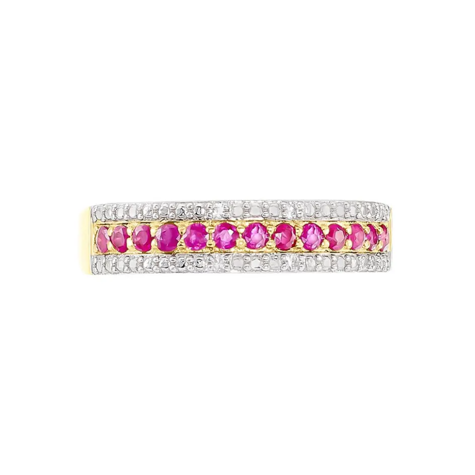 Alliance Or Jaune 375/1000 3 Rangs Rubis 0.468 Cts Micro Sertis Et Pavage Diamants