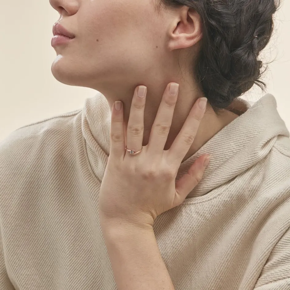 Solitaire Or Rose 375/1000 Forme Couteau Oxyde De Zirconium Central Rond