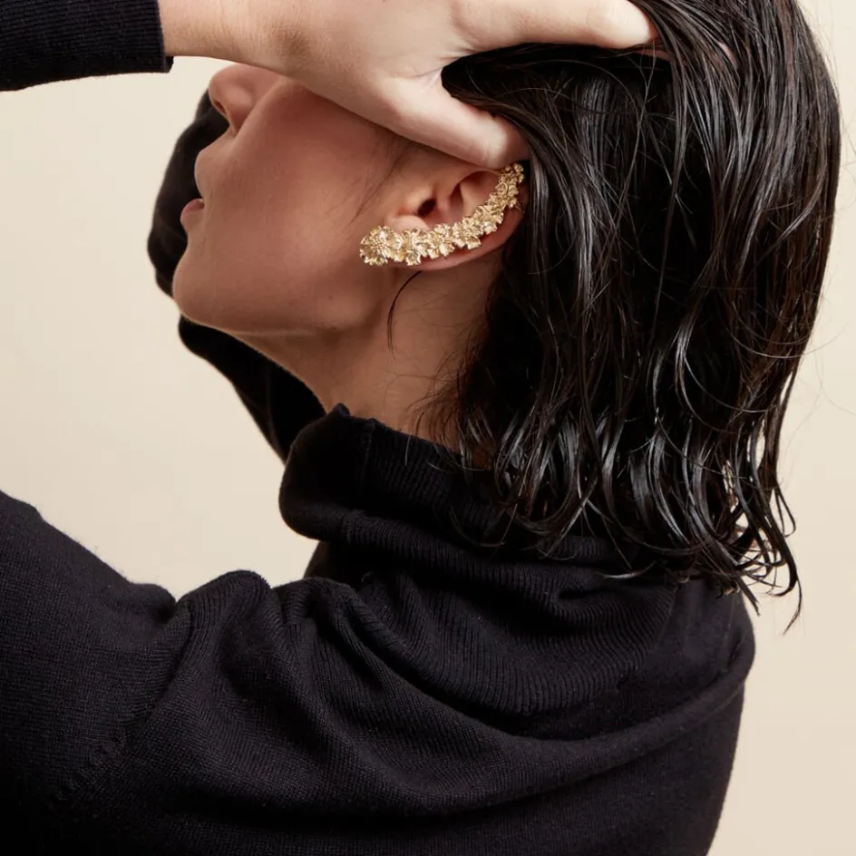 Bijou D’oreille Grimpant Unitaire Acier Inoxydable Jaune Fleurs 6.45cm