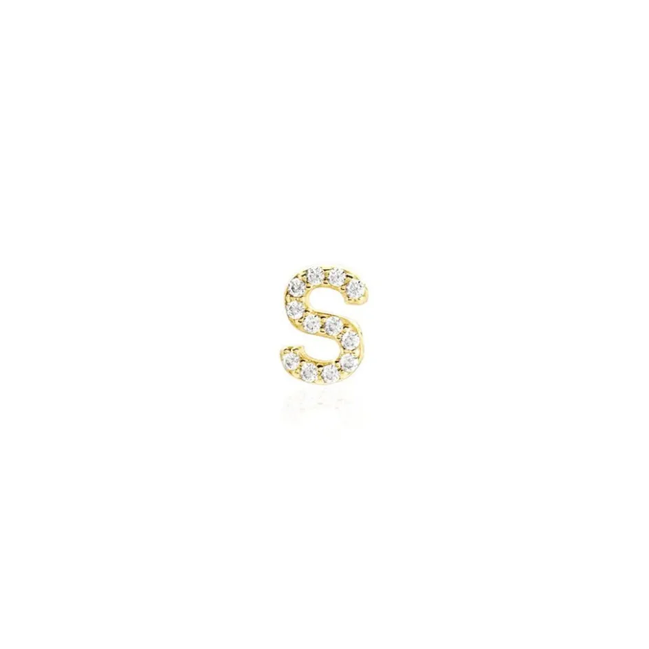 Boucle D’oreille Puce Unitaire Or Jaune 375/1000 Lettre S Oxydes De Zirconium