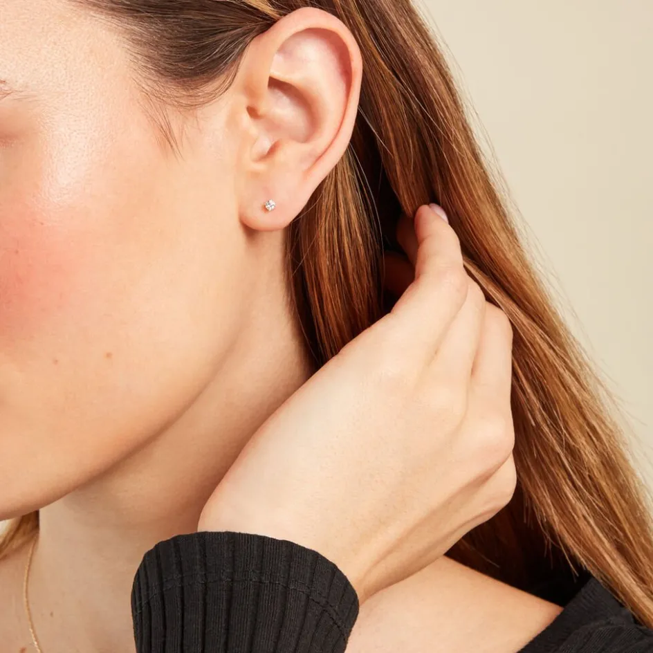 Boucle D’oreille Puce Unitaire Or Jaune 375/1000 Diamant 0.075cts Serti Griffes