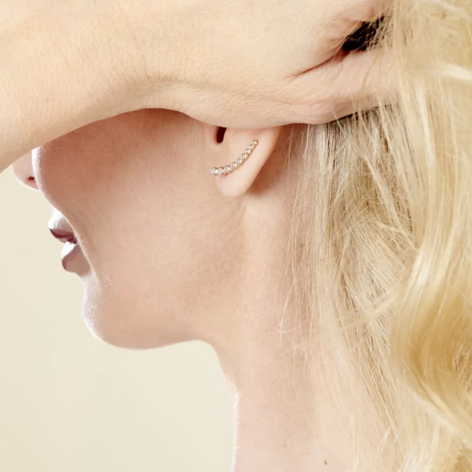 Boucles D’oreilles Grimpantes Plaque Or Jaune Forme Multi Ronds Oxydes De Zirconium