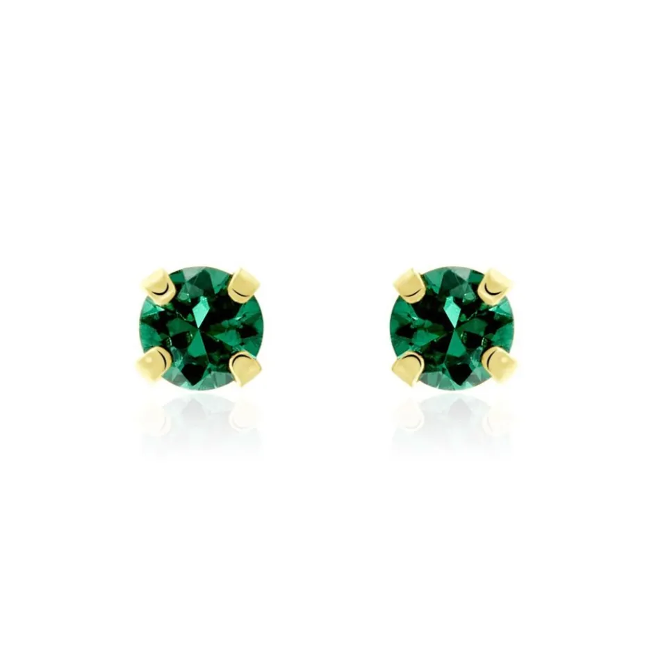 Boucles D’oreilles Puces Or Jaune 375/1000 Oxyde De Zirconium Vert 3mm
