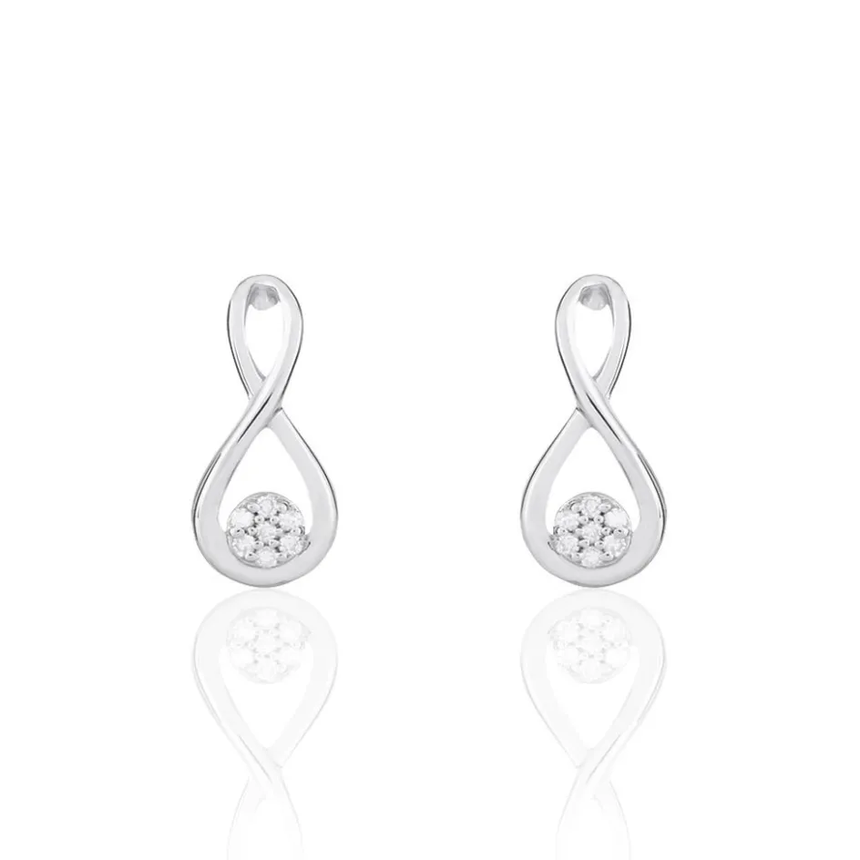 Boucles D’oreilles Or Blanc 375/1000 Forme Goutte Huit Diamants 42cm