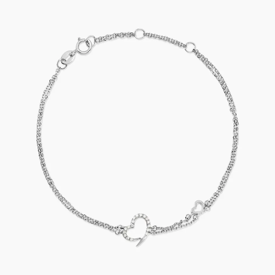 Bracelet Or Blanc 375/1000 C艙ur Diamants 18.5cm
