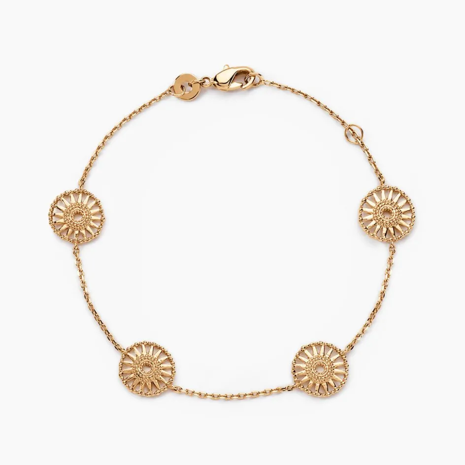 Bracelet Plaqué Or Jaune Motifs Soleil Maille Forçat 16+2cm