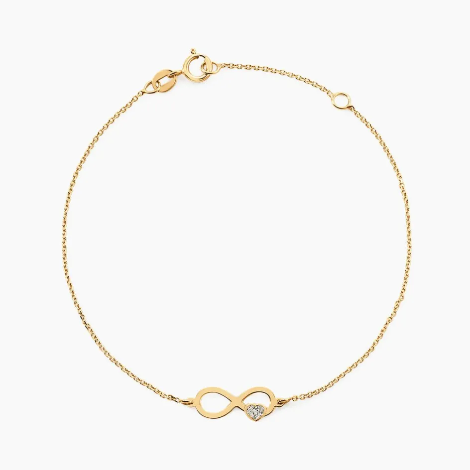 Bracelet Or Jaune 375/1000 Infini Et C艙ur Glitter Argente Maille Jaseron 16+2cm