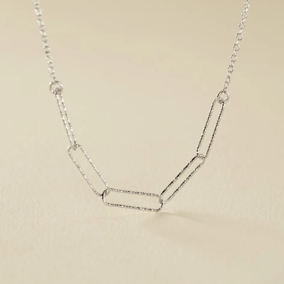 Collier Argent 925/1000 Maillons Effet Diamanté Maille Jaseron 45cm