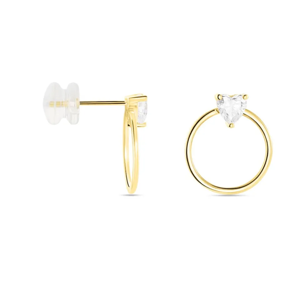 Créoles Or Jaune 375/1000 Coeur Oxydes De Zirconium Serti Griffes