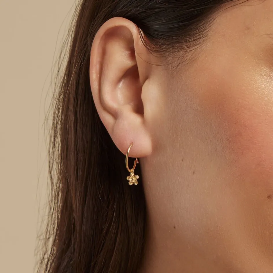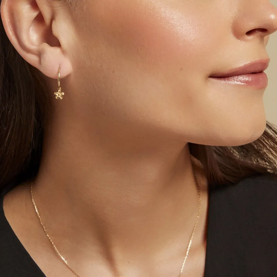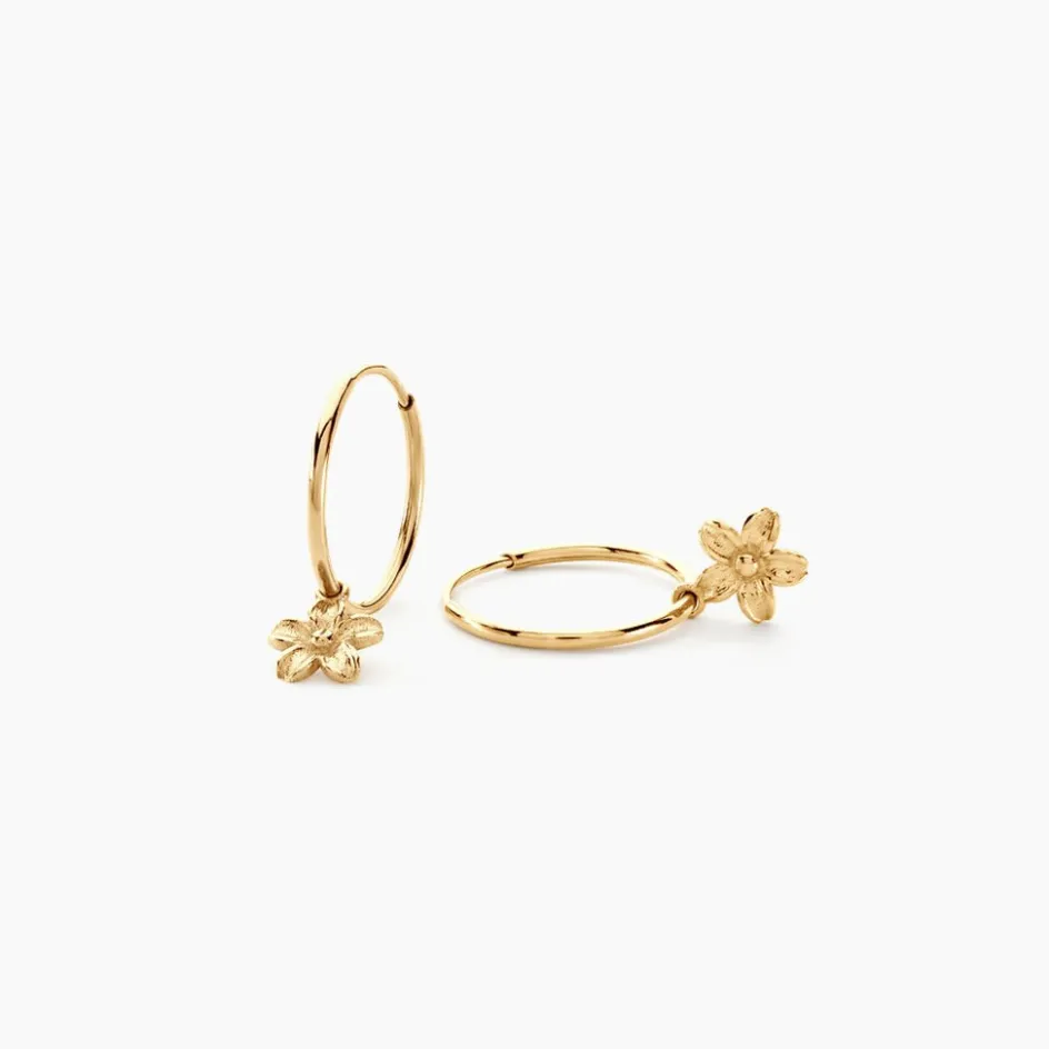 Creoles Or Jaune 375/1000 Pampille Fleur Fil Rond Flexible Lisse Diametre 12mm