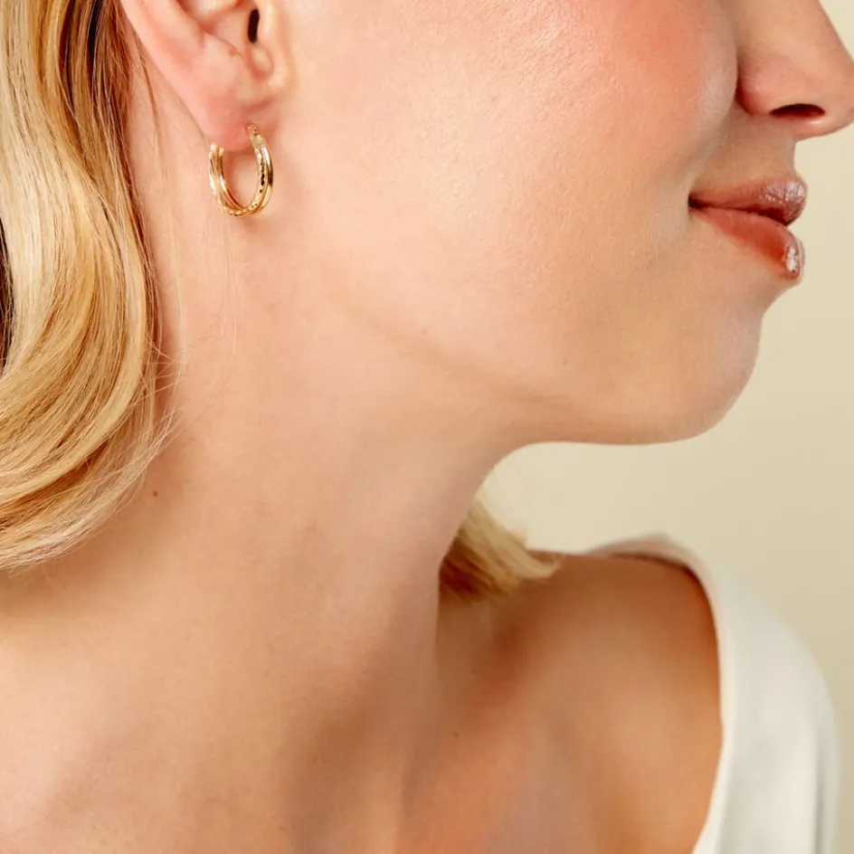 Créoles Or Jaune 375/1000 Double Rang Diamanté Diametre 15Mm