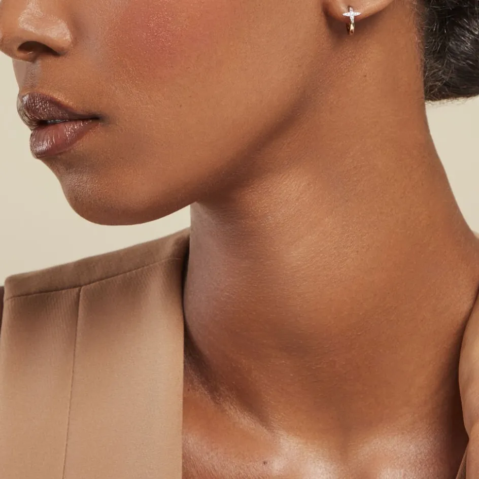 Creoles Or Jaune 375/1000 Etoiles Pavage Diamants Diametre 8.5mm