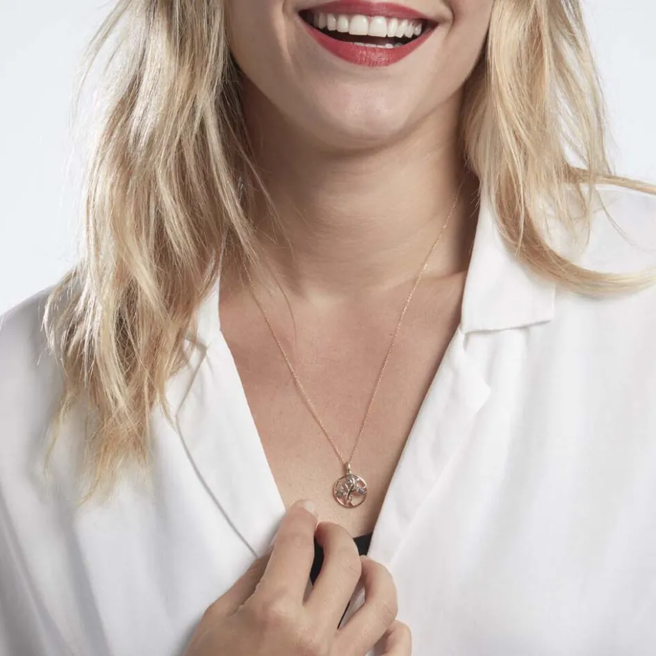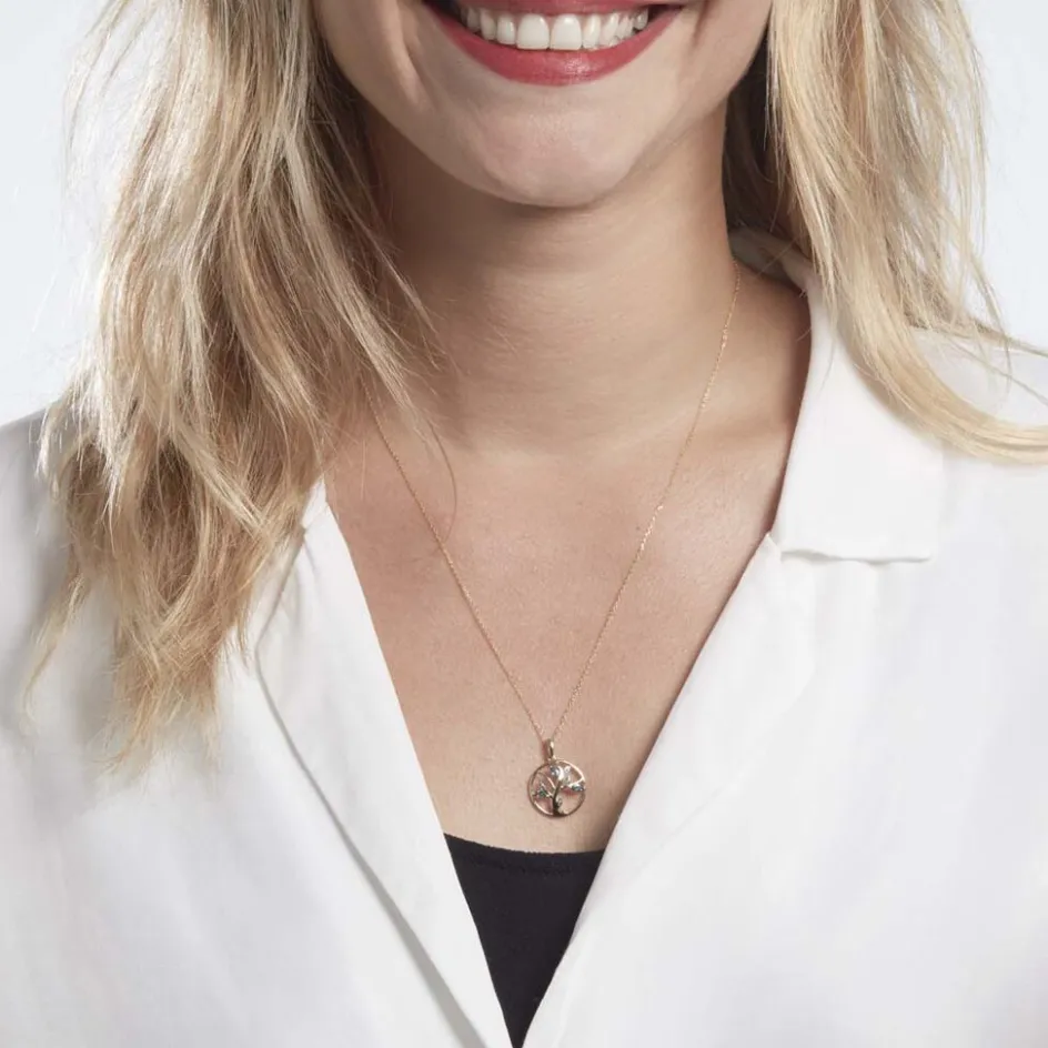 Pendentif Or Jaune 375/1000 Arbre De Vie Topazes London Blue Formes Navettes