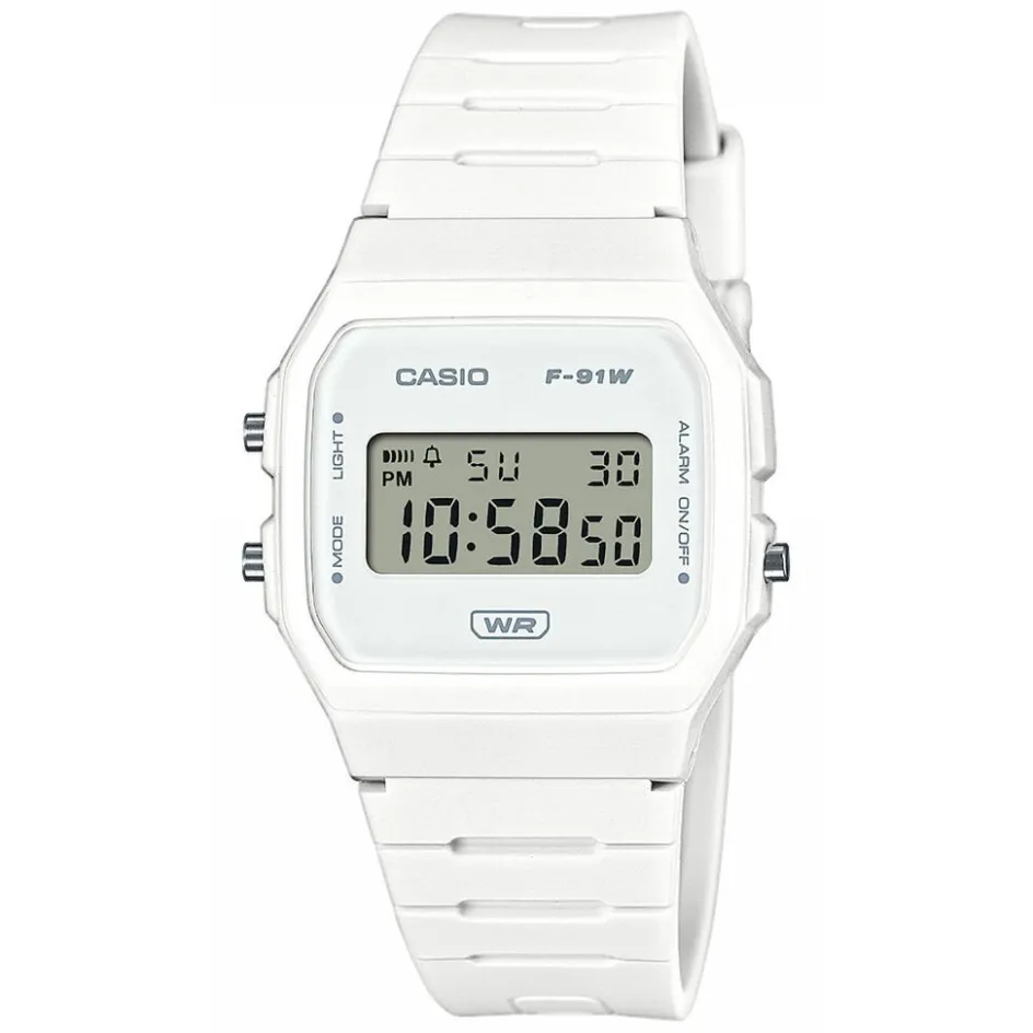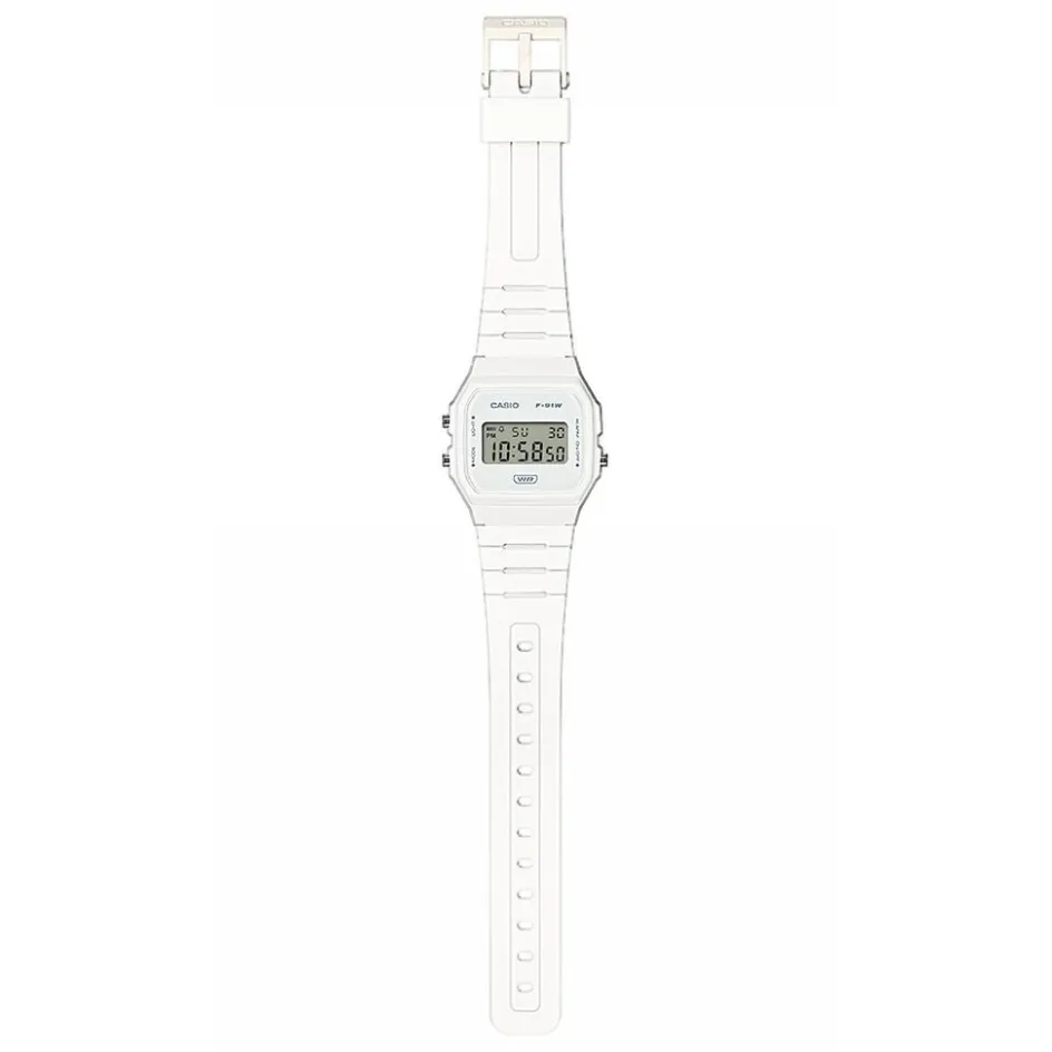 Montre Casio Collection Timeless Collection Résine Blanc Rectangle Quartz 35.2mm Fond Blanc Bracelet Résine Blanc F-91wb-7aef