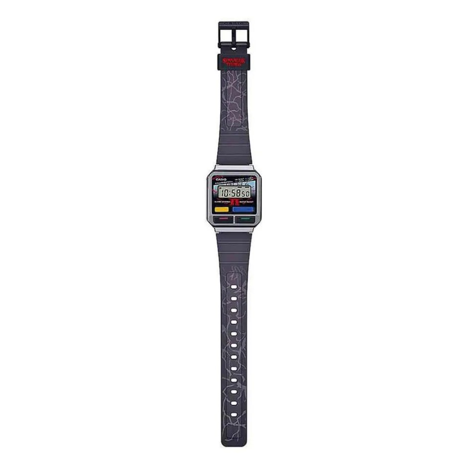 Montre Casio Collection Edition Limitée Stranger Things Digital Résine Noire Rectangle 33.5mm Fond Noir Bracelet Résine Noir A120west-1aer