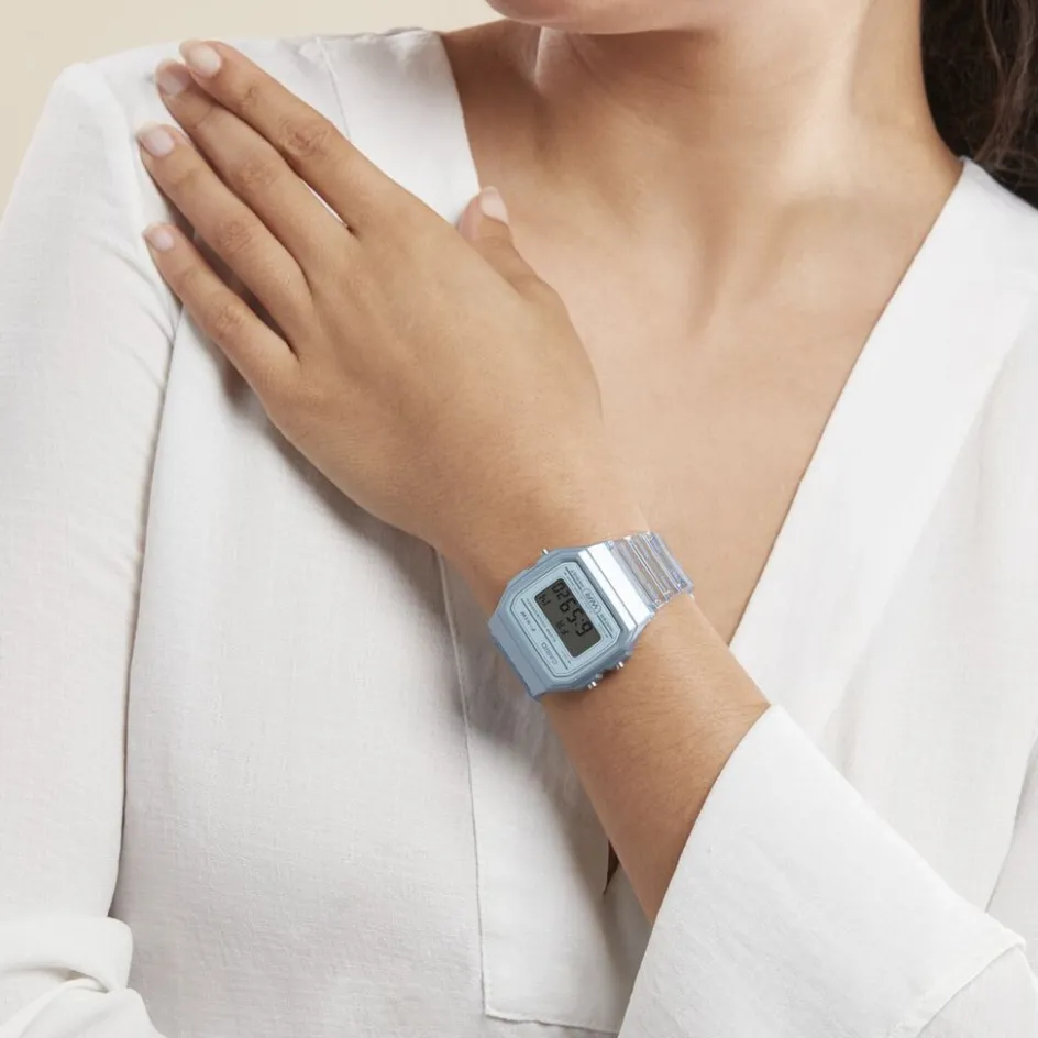 Montre Casio Collection Vintage Edgy Resine Bleu Rectangulaire Quartz Digitale 38.2mm Fond Bleu Bracelet Resine Bleu F-91ws-2ef
