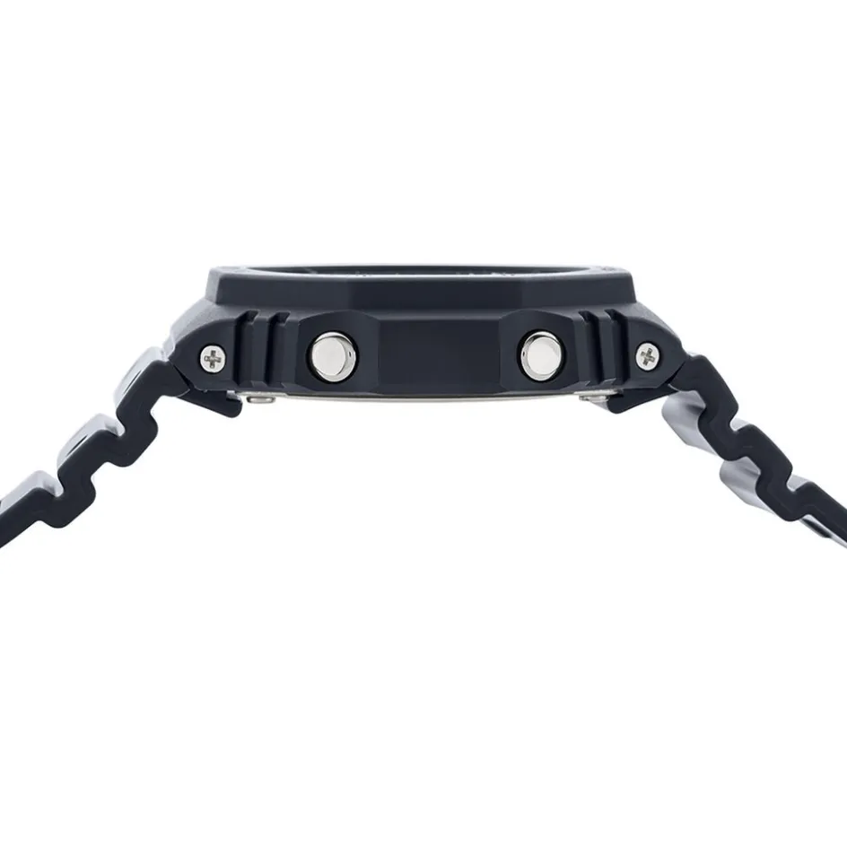Montre Casio G-shock Anadigit Resine Noire Ronde Quartz Multifonctions 45.40mm Lunette Noire Fond Argente Bracelet Resine Noire Ga-2100sb-1aer