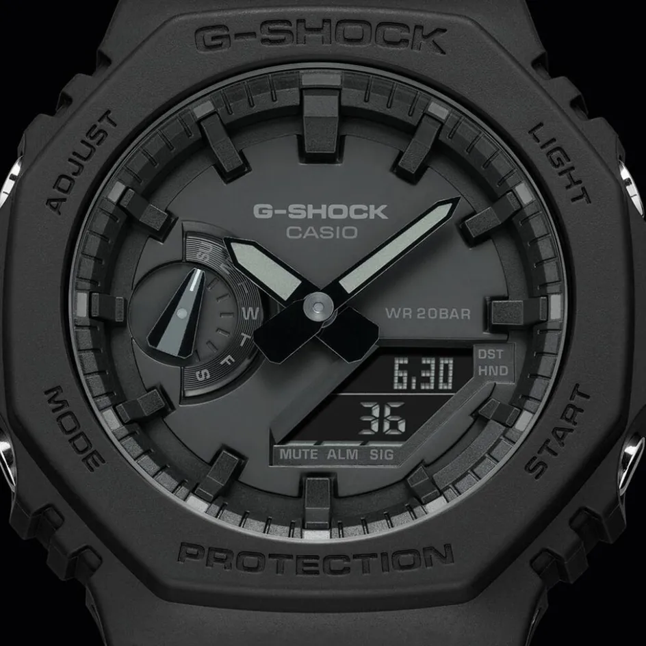 Montre Casio G-shock Classic Resine Noire Ronde Quartz 48.5mm Fond Noir Et Index Noir Bracelet Resine Noire Ga-2100-1a1er