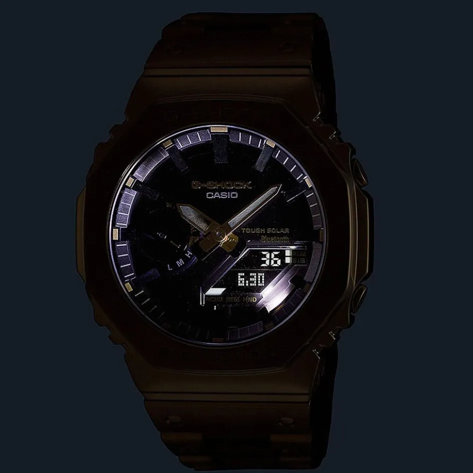 Montre G-shock Premium Classic Acier Doré Ronde Quartz 44.4mm Fond Noir Bracelet Acier Doré Gm-b2100gd-9aer