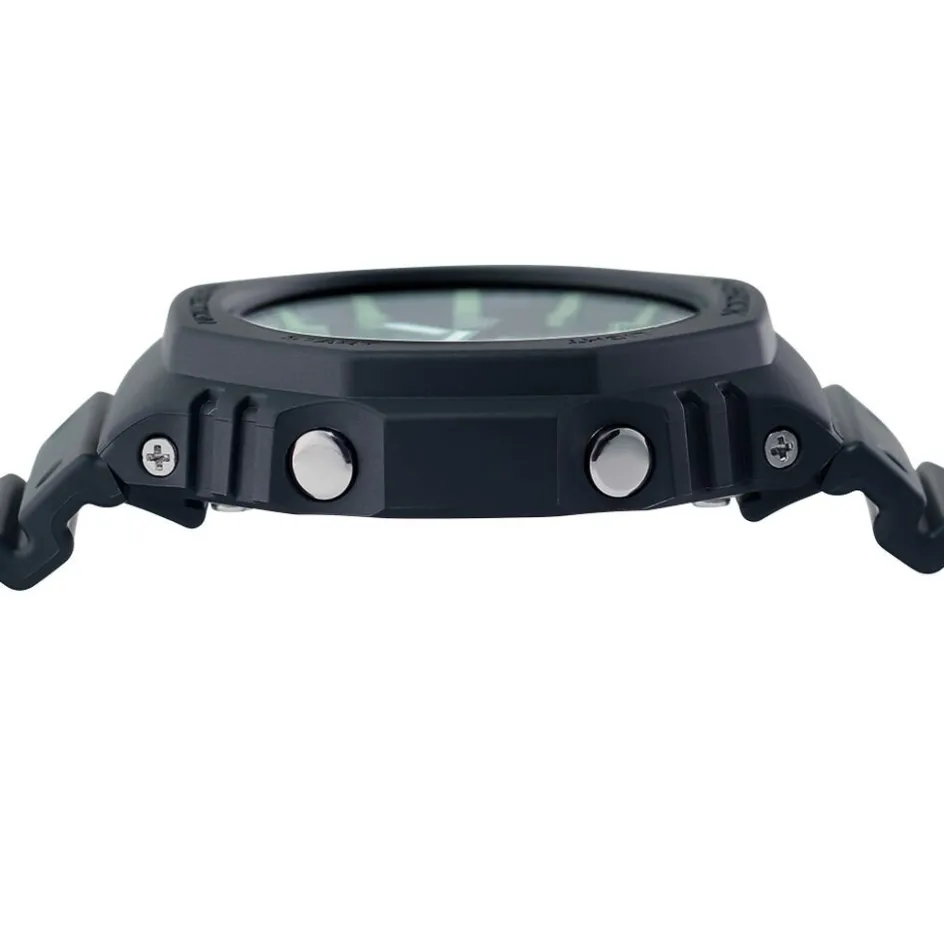 Montre Casio G-shock Anadigit Resine Noire Ronde Quartz Multifonctions 45.40mm Lunette Noire Fond Noir Bracelet Resine Noire Ga-2100rc-1aer