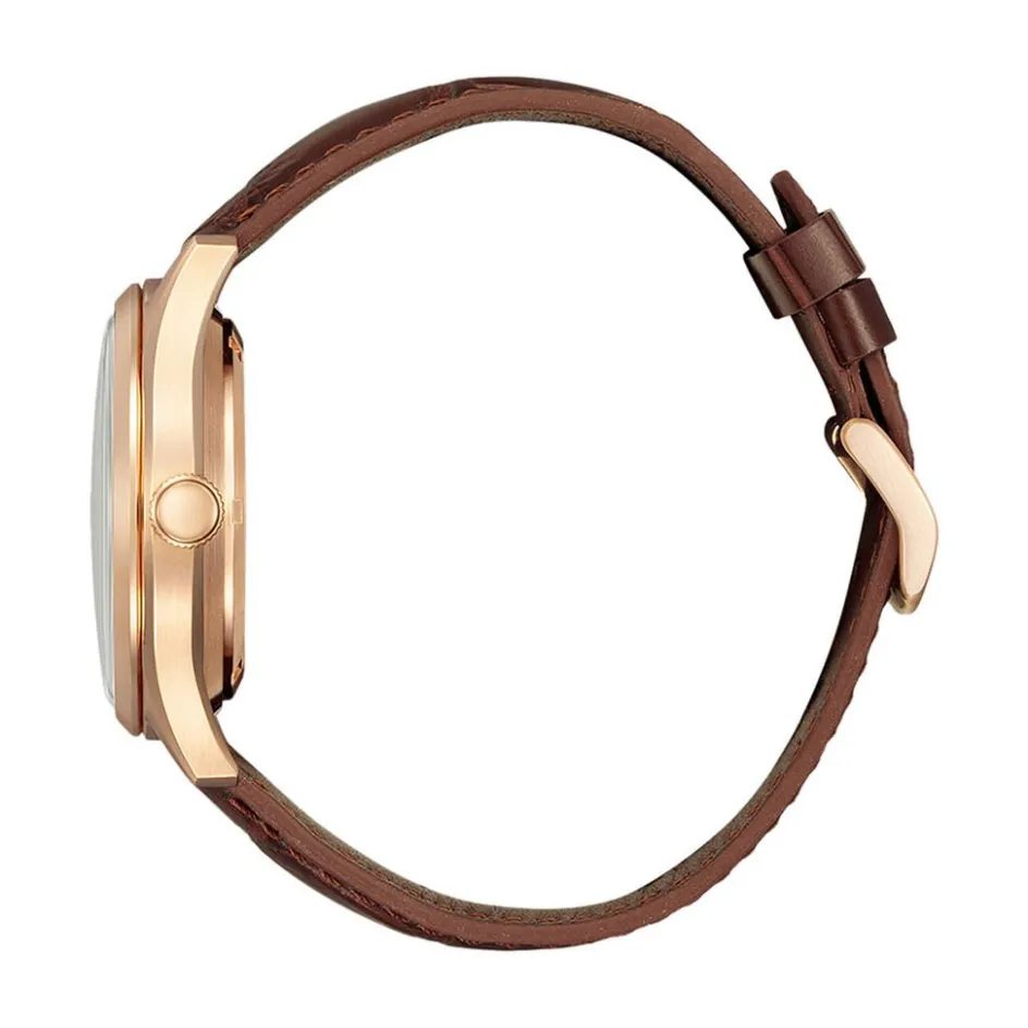 Montre Citizen C7 Mechanical Acier Doré Ronde 40.2mm Automatique Fond Blanc Bracelet Cuir De Veau Marron Nh8393-05ae