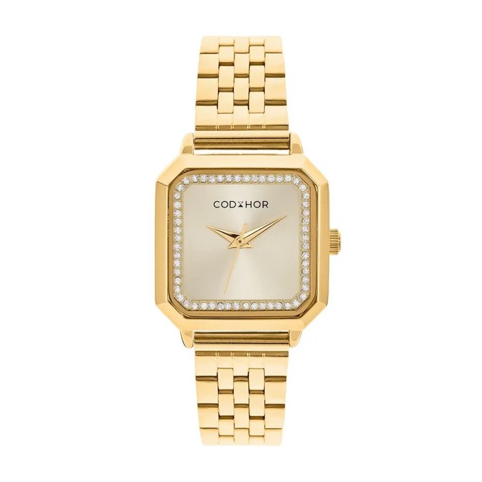 Montre Codhor Carla Alliage Dore Carre Quartz 26mm Fond Dore Strass Blanc Bracelet Acier Dore Ch.4999la/03m