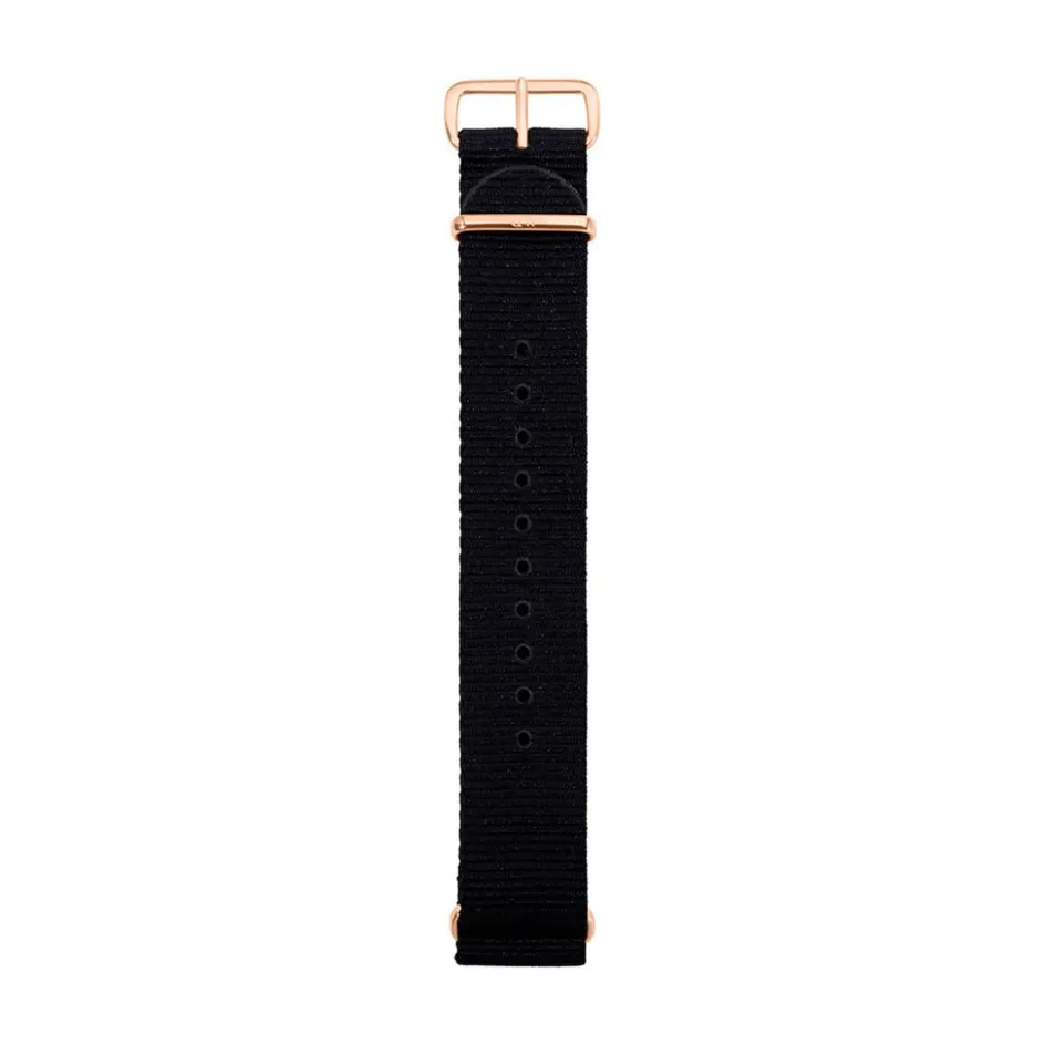 Bracelet De Montre Cornwall Nylon Noir Boucle Ardillon Acier Dore Rose 18mm/boitier 36