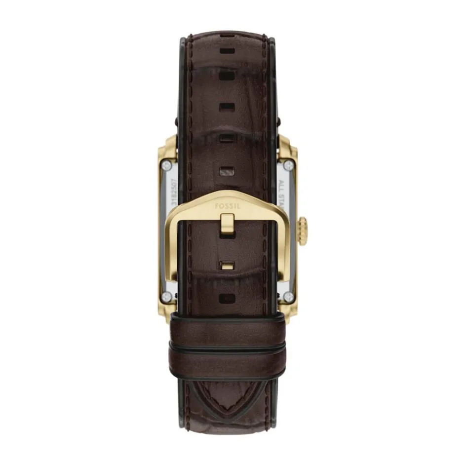 Montre Fossil Carraway Automatic Acier Inoxydable Doré Automatique Rectangulaire 30Mm Fond Vert C艙ur Ouvert Bracelet Cuir De Vache Marron Me3271