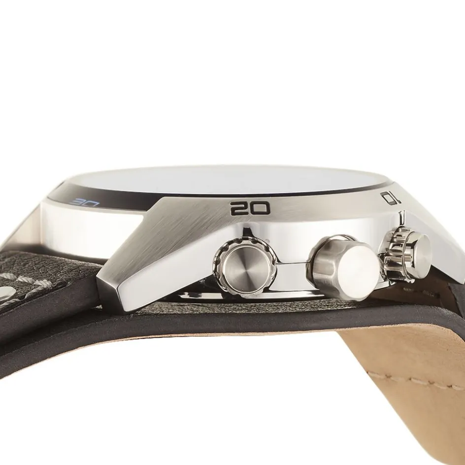 Montre Fossil Coachman Acier Blanc Ronde Quartz Chronographe 45mm Fond Bleu Bracelet Cuir Noir Ch2564
