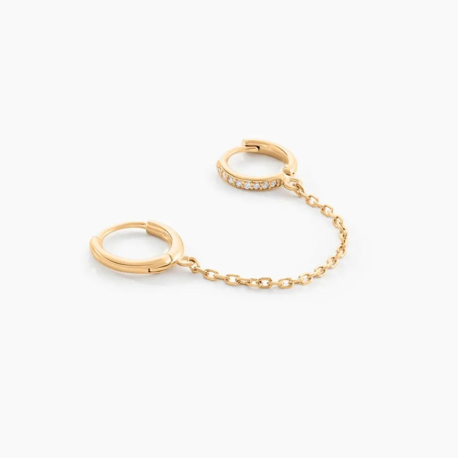 Boucle D’oreille Unitaire Plaque Or Jaune Creole Lisse Et Creole Pavage Oxydes De Zirconium 11mm Maille Forcat 4cm