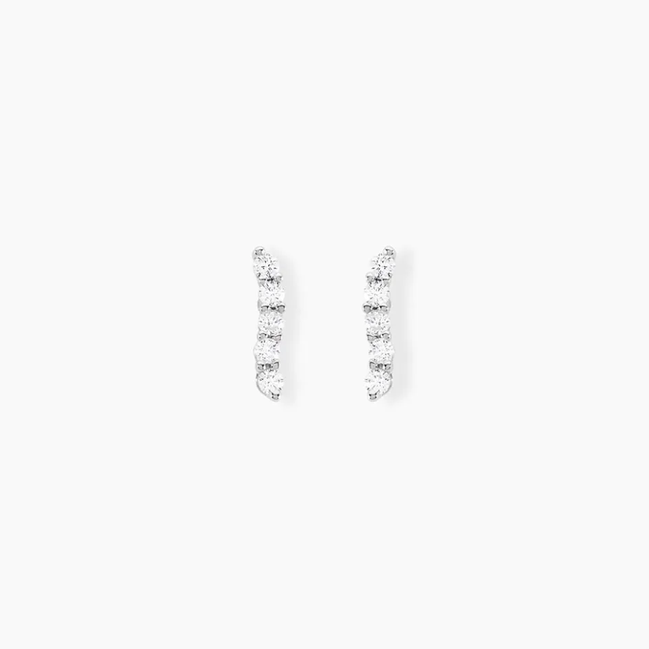 Boucles D’oreilles Or Blanc 375/1000 Fil Avec Poussette Silicone Oxydes De Zirconium