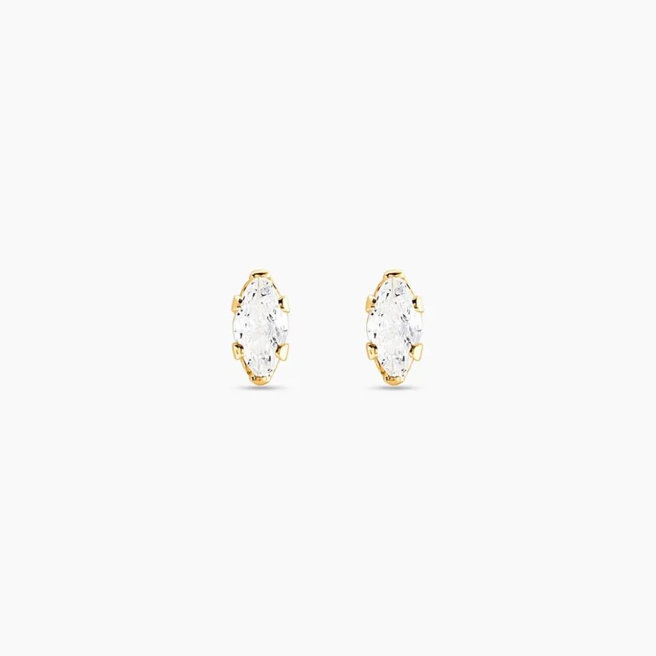 Boucles D’oreilles Puces Or Jaune 750/1000 Navettes Sertis Griffes Oxydes De Zirconium 4mmx2mm