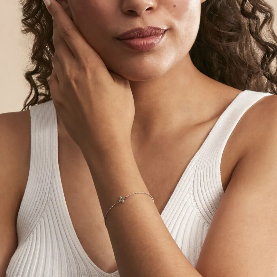 Bracelet Argent Blanc 925/1000 Motif Fleur Maille Forçat 20cm