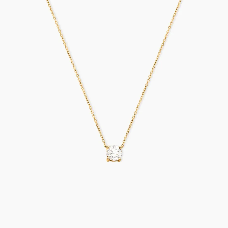 Collier Or Jaune 750/1000 Solitaire Diamant Synthetique 0.70cts 45cm
