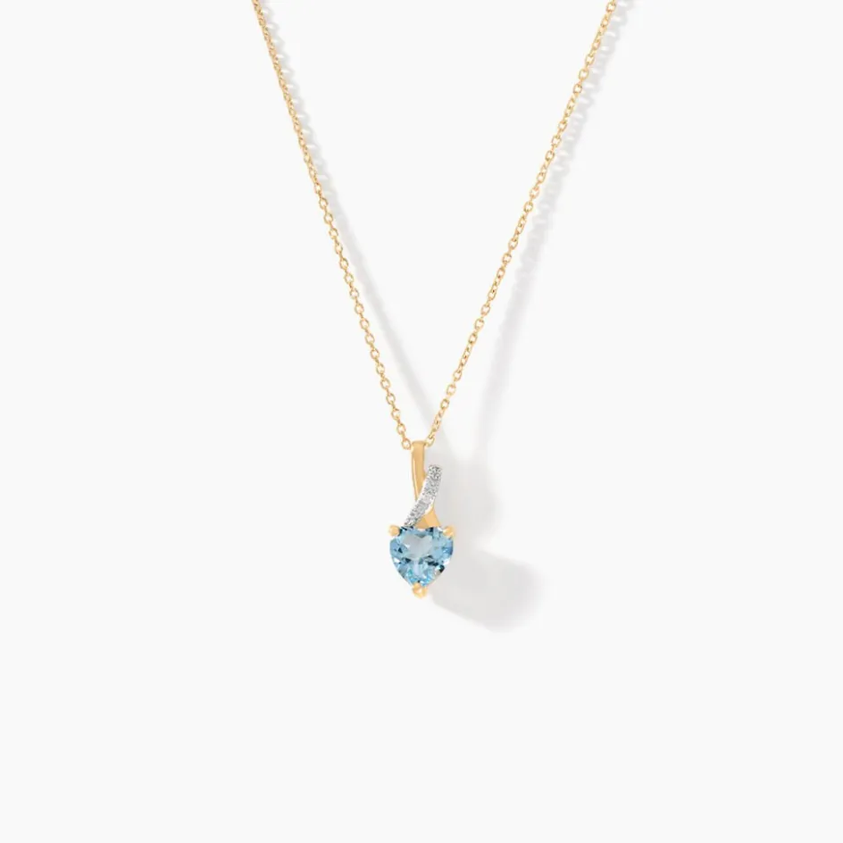 Collier Or Jaune 375/1000 C艙ur Topaze Bleu Sky 0.994 Cts Serti Griffes 0.9mm Maille Forçat 40+2cm