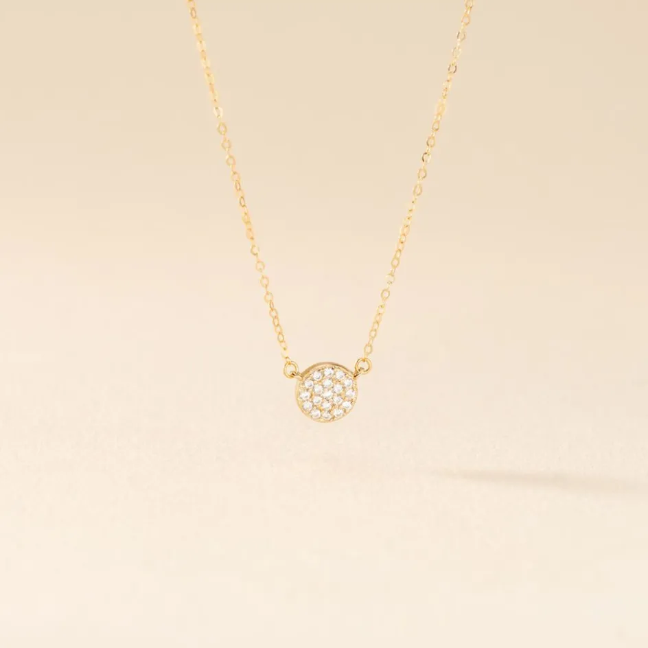 Collier Or Jaune 375/1000 Pastille Ronde Oxyde De Zirconium Maille Forçat 42cm