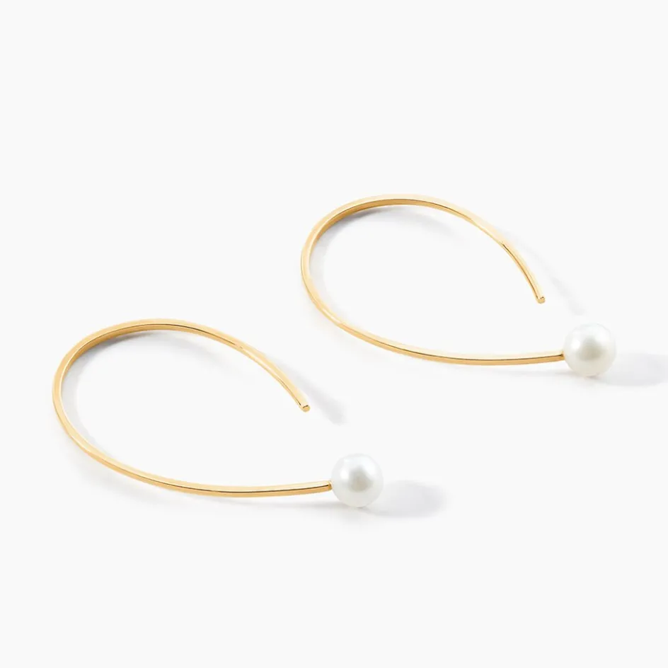 Creoles Or Jaune 375/1000 Amandes Perles De Culture 4/4,5Mm