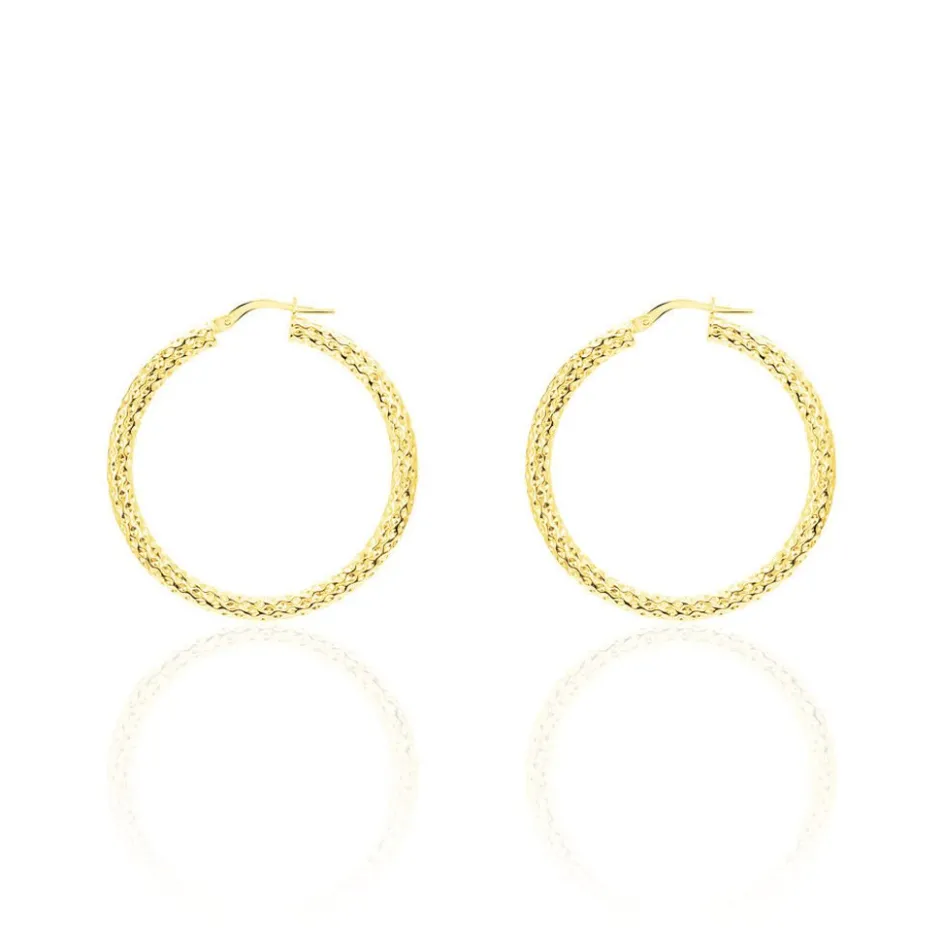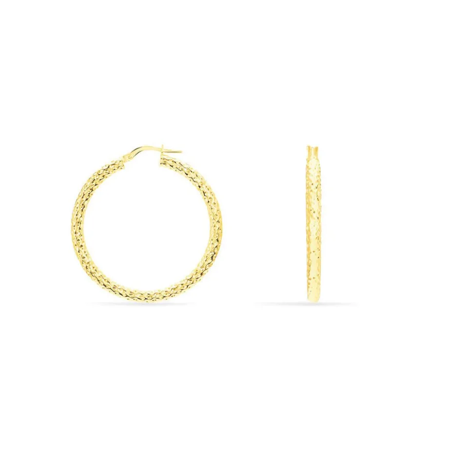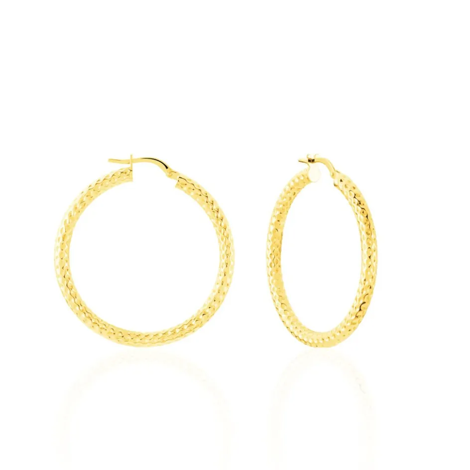 Créoles Or Jaune 375/1000 Fil Rond Martele Largeur 3mm Diamètre 30mm