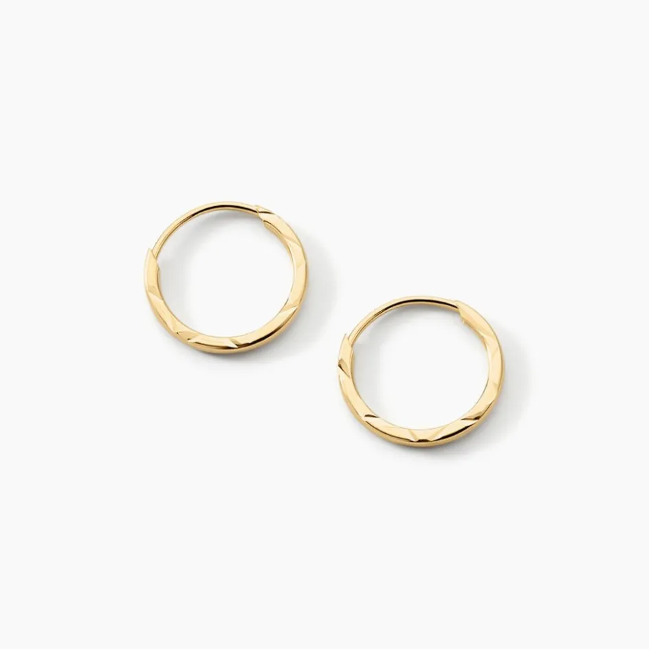 Creoles Or Jaune 750/1000 Fil Plat Ciselees Largeur 1mm Diametre 10mm